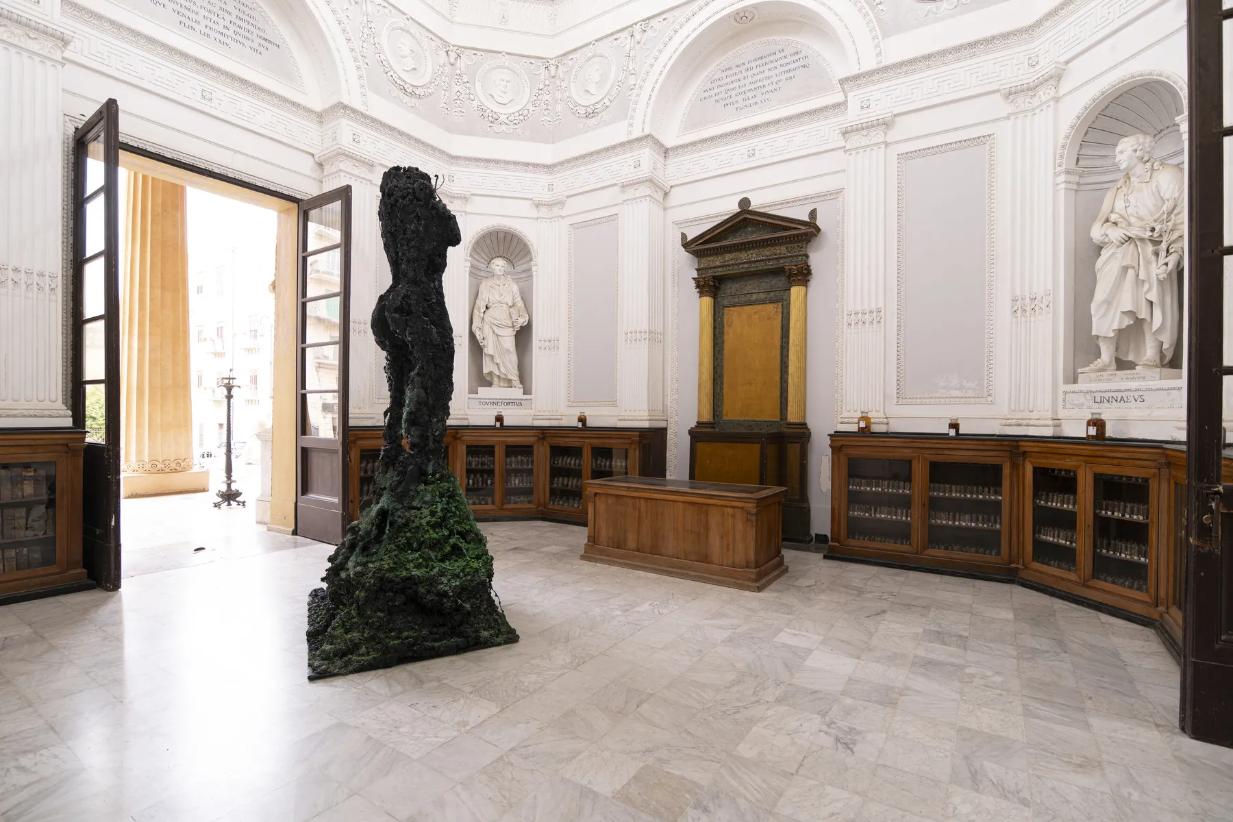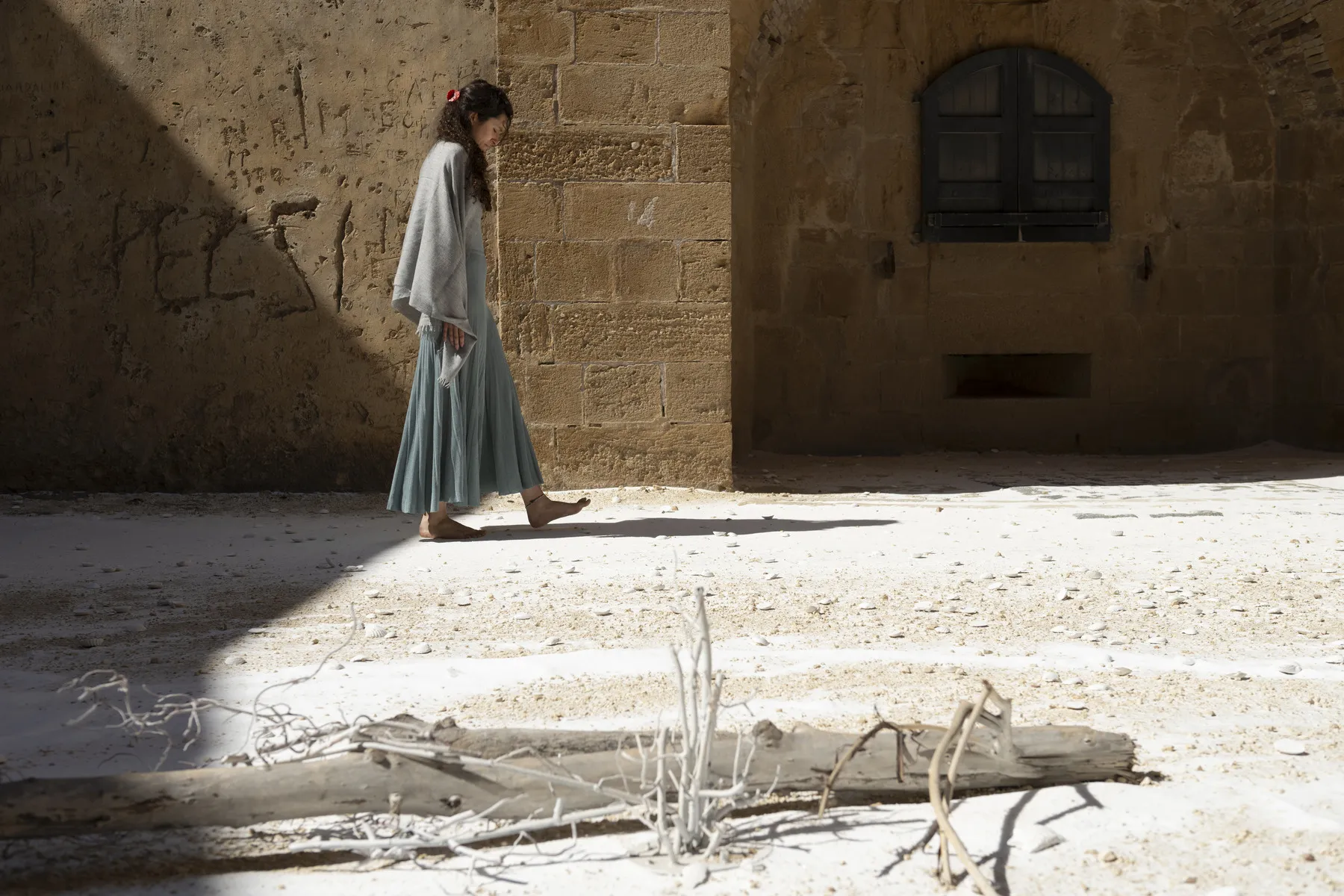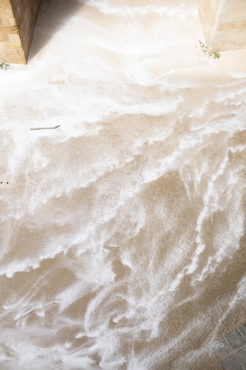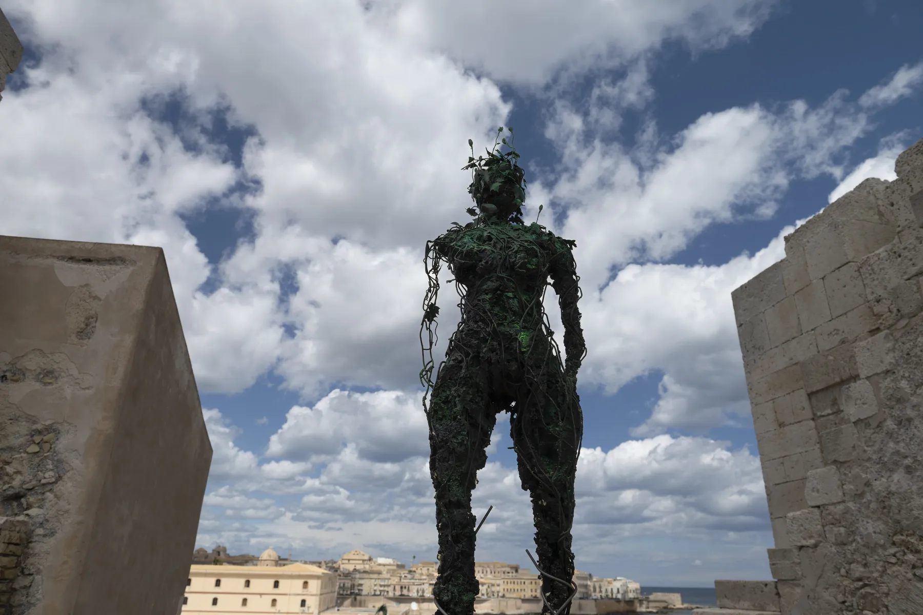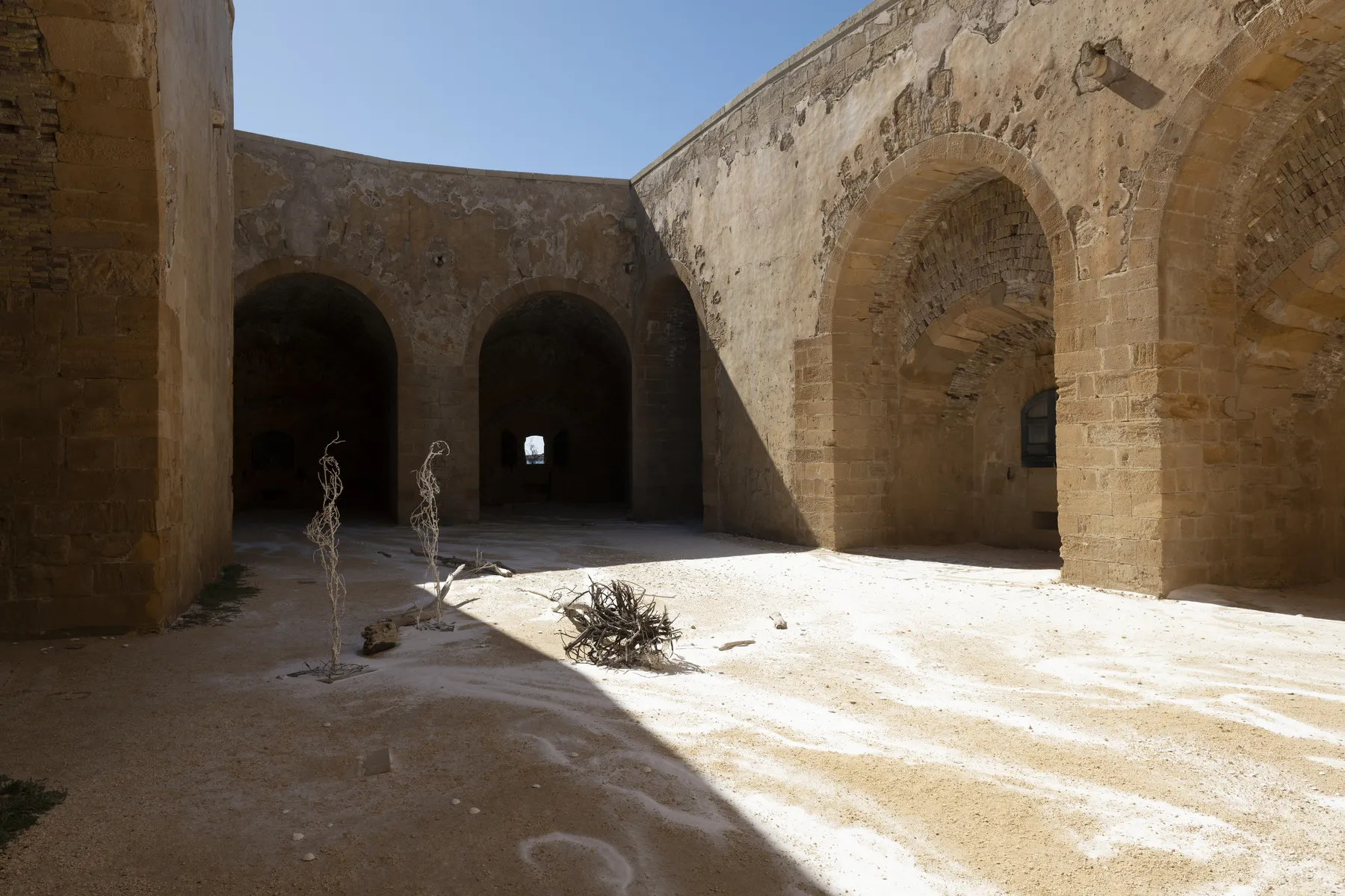 Nelle incavature del Castello Maniace, le opere della serie ‘Kura Halos’, dal greco kura-halos, che significa ‘forma umana’, raffigurano donne-coralli i cui colori variano dal rosso vivace, al rosa, al bianco, testimoniando il processo di sbiancamento dei coralli, un fenomeno sempre più diffuso negli oceani e sintomo della crisi climatica in corso.