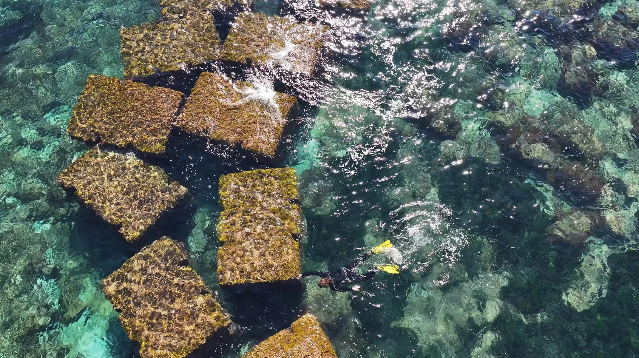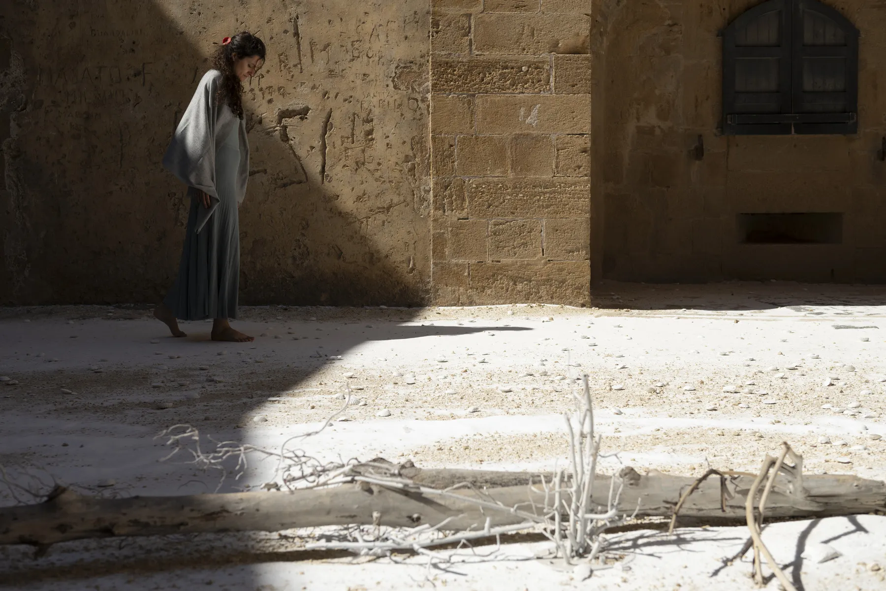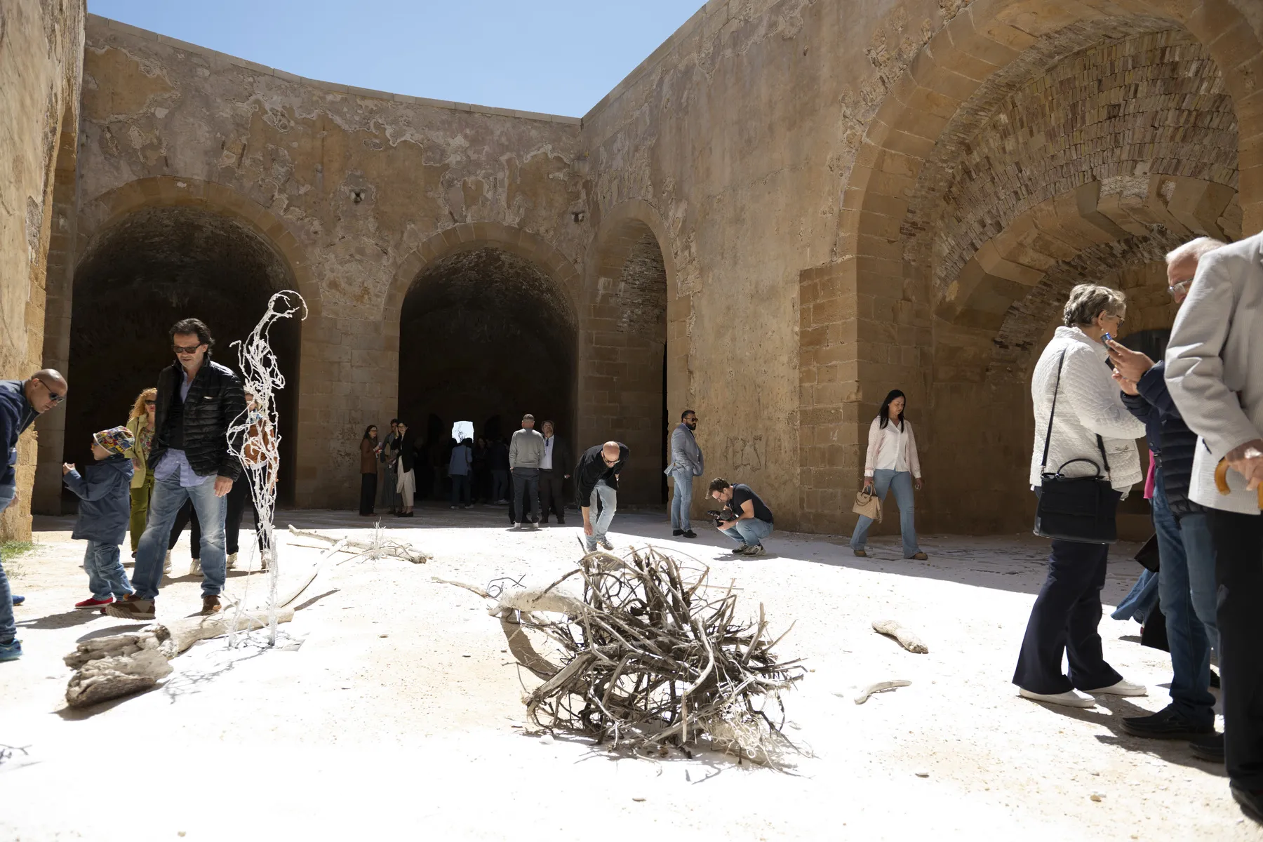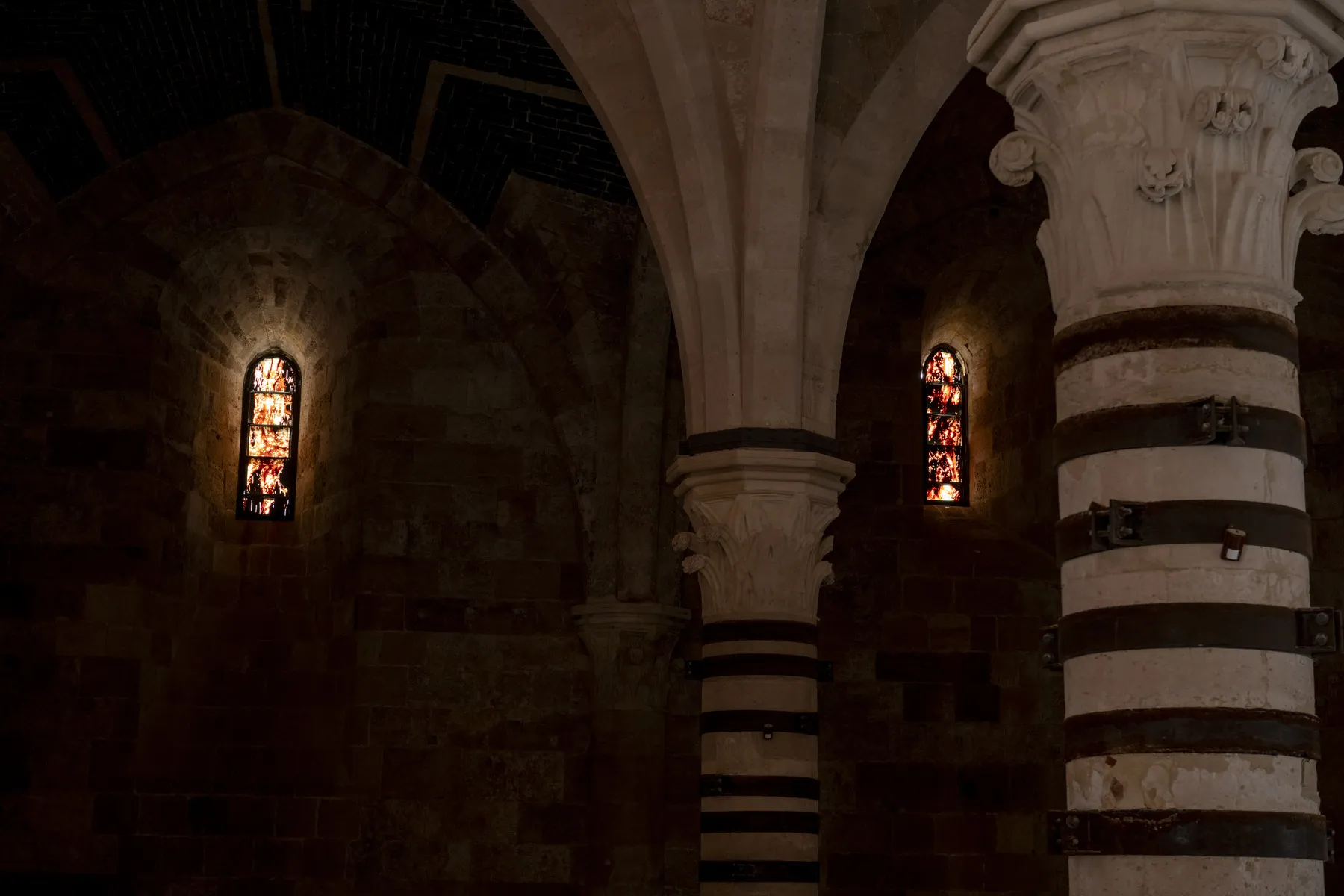 Nelle incavature del Castello Maniace, le opere della serie ‘Kura Halos’, dal greco kura-halos, che significa ‘forma umana’, raffigurano donne-coralli i cui colori variano dal rosso vivace, al rosa, al bianco, testimoniando il processo di sbiancamento dei coralli, un fenomeno sempre più diffuso negli oceani e sintomo della crisi climatica in corso.