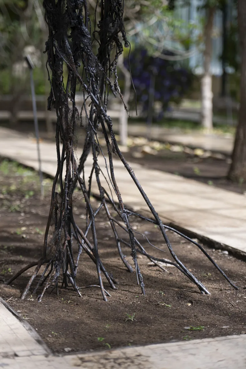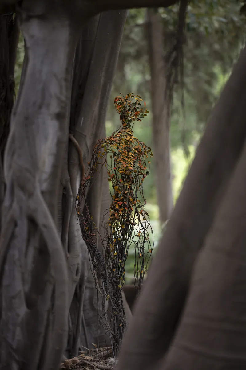 Le sculture dell’artista raffigurano corpi ibridi in trasformazione che attivano analogie visive: da un lato l’anatomia umana, in particolare il corpo femminile, e dall’altro, organismi complessi del regno vegetale e animale, come colonie di corallo, il corpo aereo degli alberi o le reti di micelio.