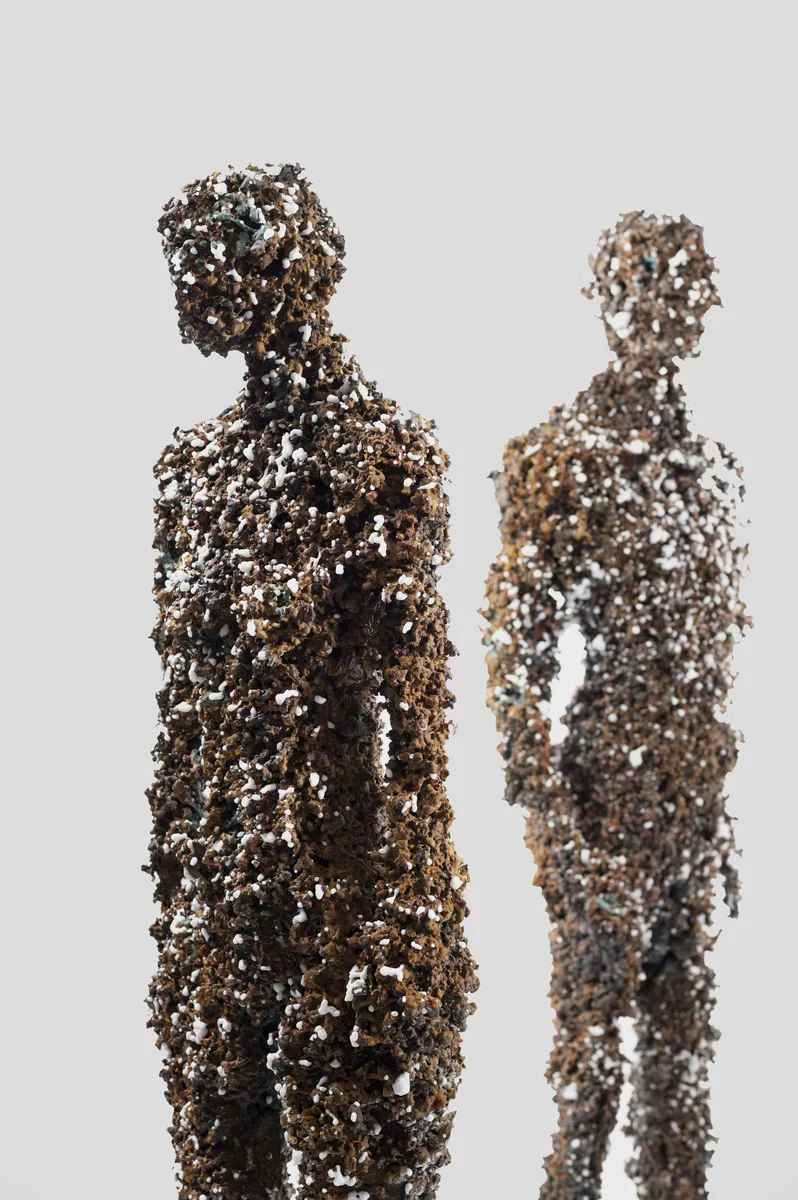 Rusticles Foam, 2023 tecnica mista, ferro saldato, ossidi di ferro e rame, poliuretano figura 1, 203 x 50 x 50 cm figura 2, 196 x 50 x 50 cm